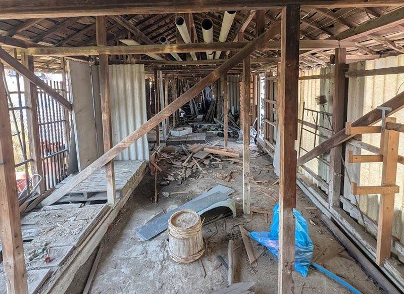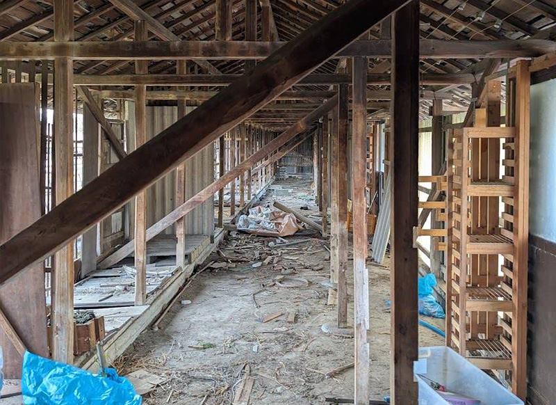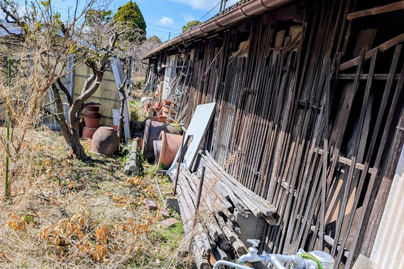 現地を確認すると、母屋・離れ・2階建ての倉庫に加え、前面道路を挟んだ真正面には、かつて鶏舎として使用されていた、母屋を上回る規模の長屋(旧鶏舎)が現在もそのまま残されていました。鶏舎裏に残されていた小屋の解体も含め、細部にわたるご要望を改めて確認し、敷地全体のお片付け・整理・撤去作業として正式にご依頼をいただきました。
